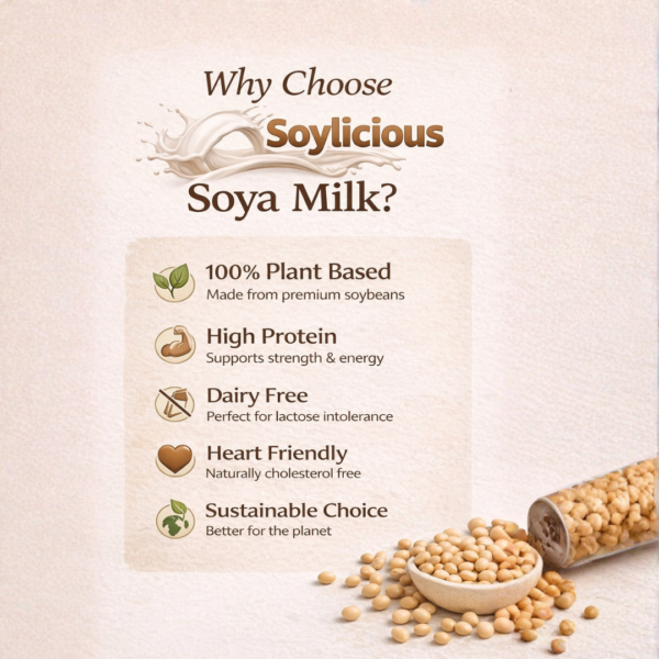 Soylicious Soya Milk is a delicious and nutritious plant-based milk alternative designed for modern healthy lifestyles. Made from carefully selected soybeans and processed under hygienic conditions, Soylicious delivers a smooth, creamy taste while providing the nutritional benefits of plant protein.
