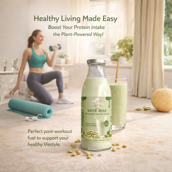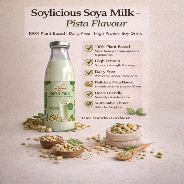 Soylicious Soya Milk is a delicious and nutritious plant-based milk alternative created for modern healthy lifestyles. Made from carefully selected soybeans and enriched with a delightful pista flavour, this beverage offers a smooth, creamy taste while delivering essential plant protein.